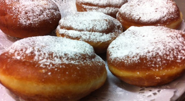 Hausgemachte Krapfen nach altem Rezept und von der Oma, persönlich gebacken. Marillenmarmelade mit ein bisschen Rum, und nicht zu wenig davon ;-), ein bisschen Staubzucker und dann gibt es nix besseres als einfach beim Füllloch hineinzubeißen. Hmmm……