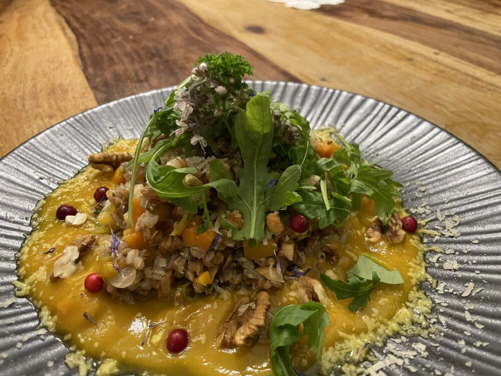 frische Kräuter / geröstete Kürbiswürferl / Rucola / Bergkäse